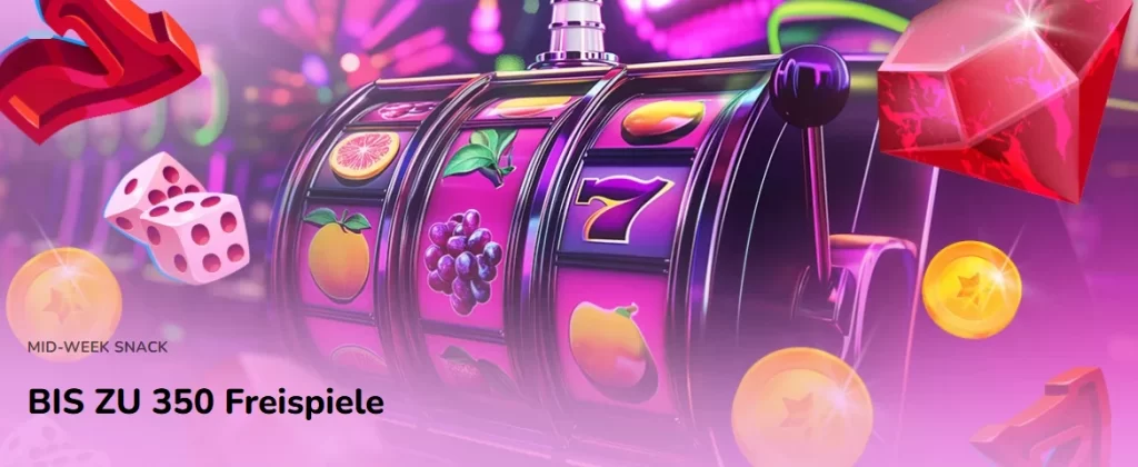 Jeden Mittwoch haben Spieler die Möglichkeit, im Rahmen einer speziellen Wochenmitte-Aktion bis zu 350 Freispiele zu erhalten. Mit dem Aktionscode SNACK können Spieler drei verschiedene Angebote in beliebiger Reihenfolge nutzen. Eine Einzahlung von 20 € gewährt 20 Freispiele, eine Einzahlung von 50 € 80 Freispiele und eine Einzahlung von 100 € 250 Freispiele. Dank dieses flexiblen Systems können Spieler diese Angebote mit ihren Einzahlungen am Mittwoch kombinieren und so ganz einfach die Anzahl der verfügbaren Freispiele maximieren.